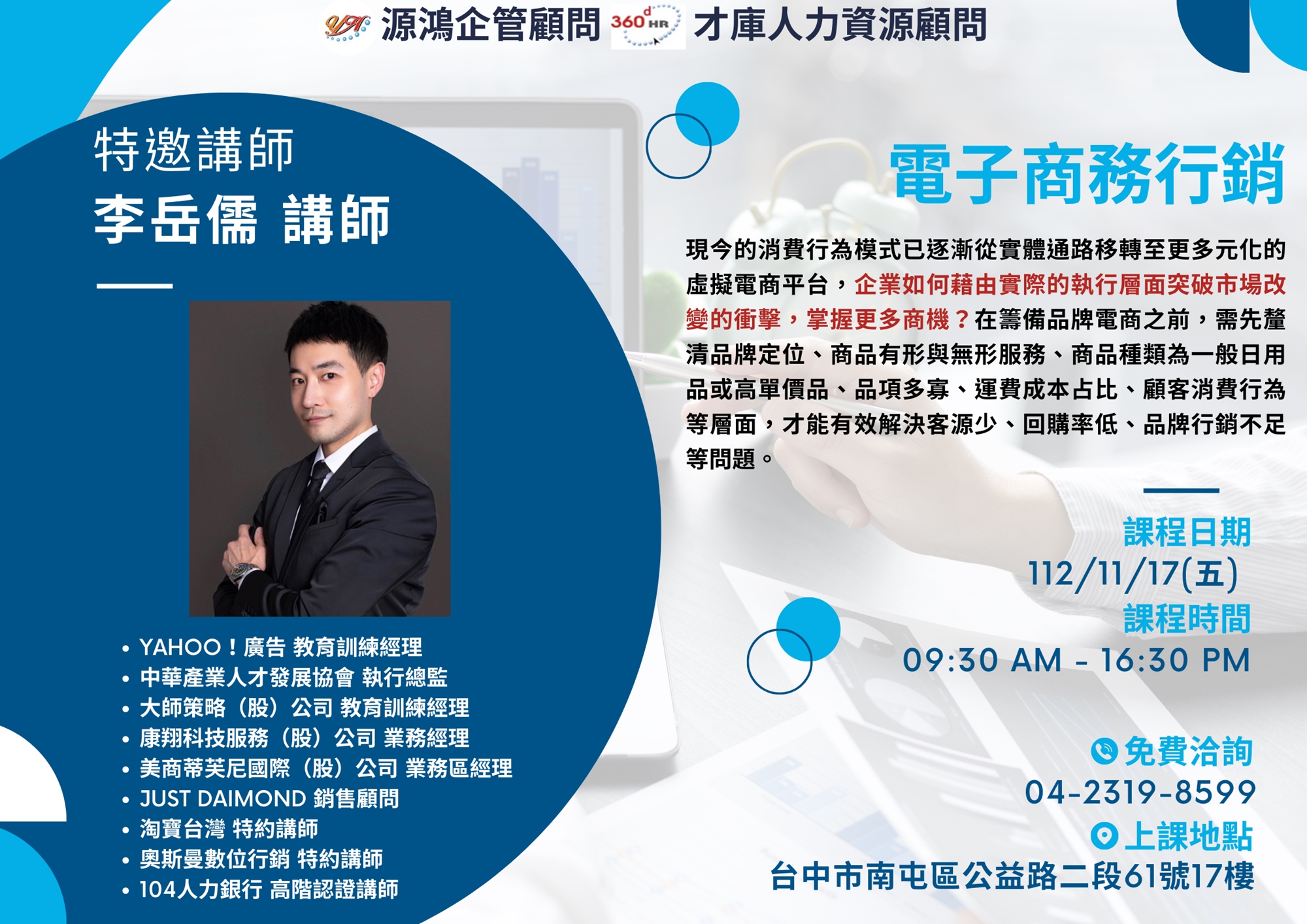 【免費洽詢】企訓部 林冠宇先生 (04)2319-8599