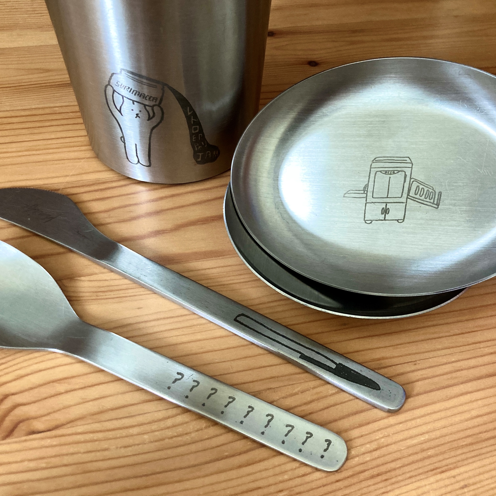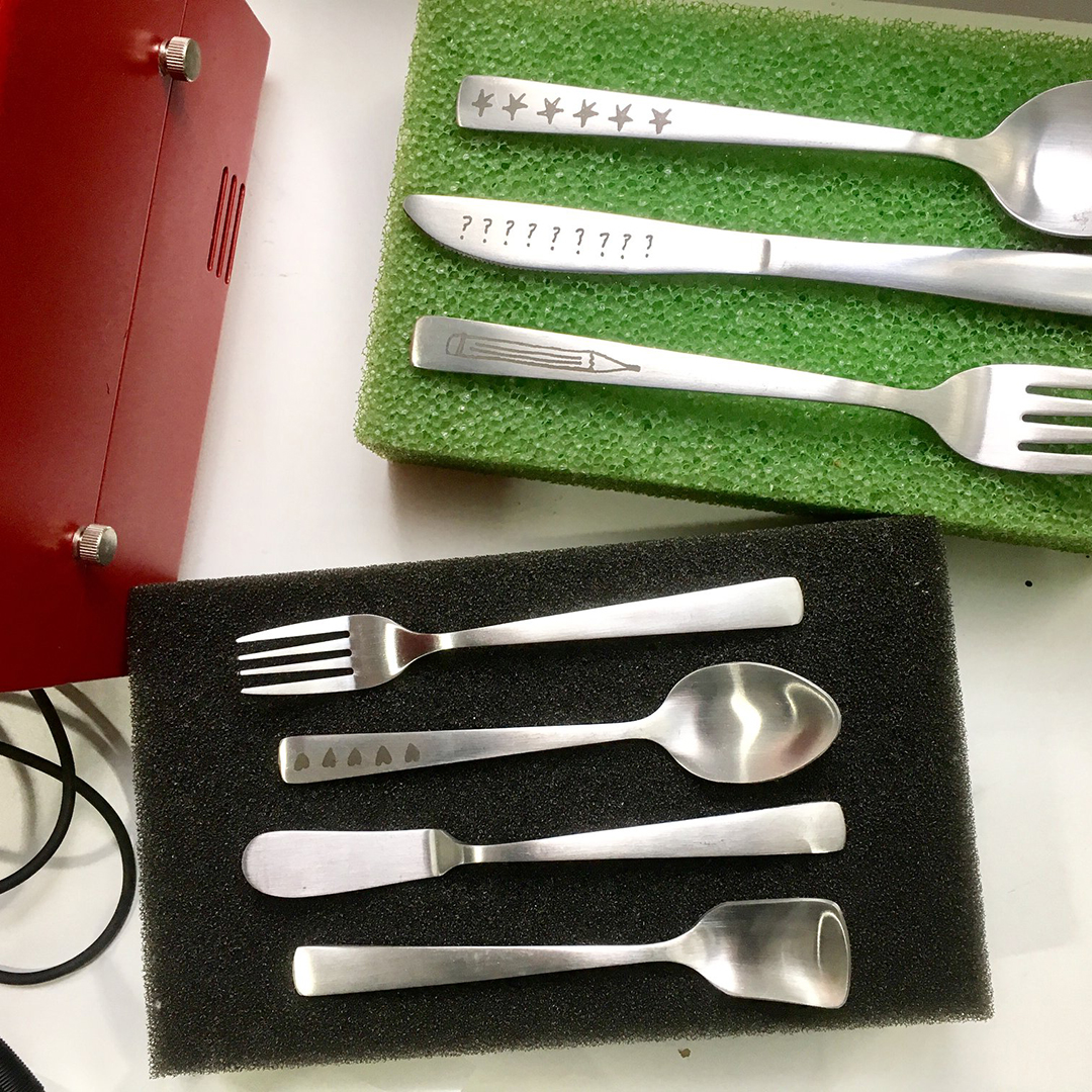 \ 奇怪の印刷!/ 使用電解專用 200 目網版,利用通電的方式在金屬表面印刷圖案。就像幫金屬刺青一樣,你可以現場繪製圖案,或自備電子檔 當場使用電解金屬印刷機 PIY(Print It Yourself) 最後帶走自己 Original 的不鏽鋼杯子&餐具!