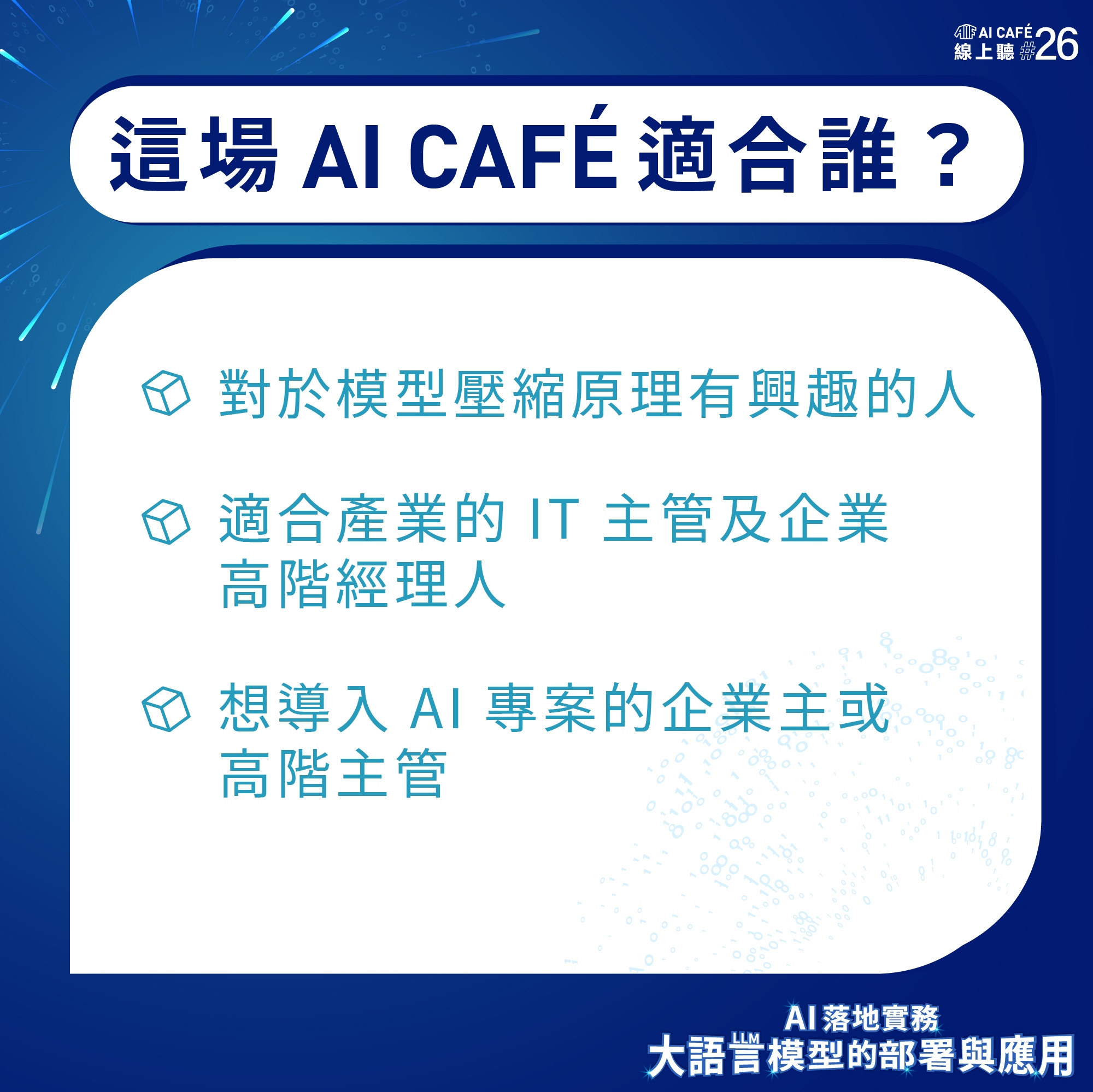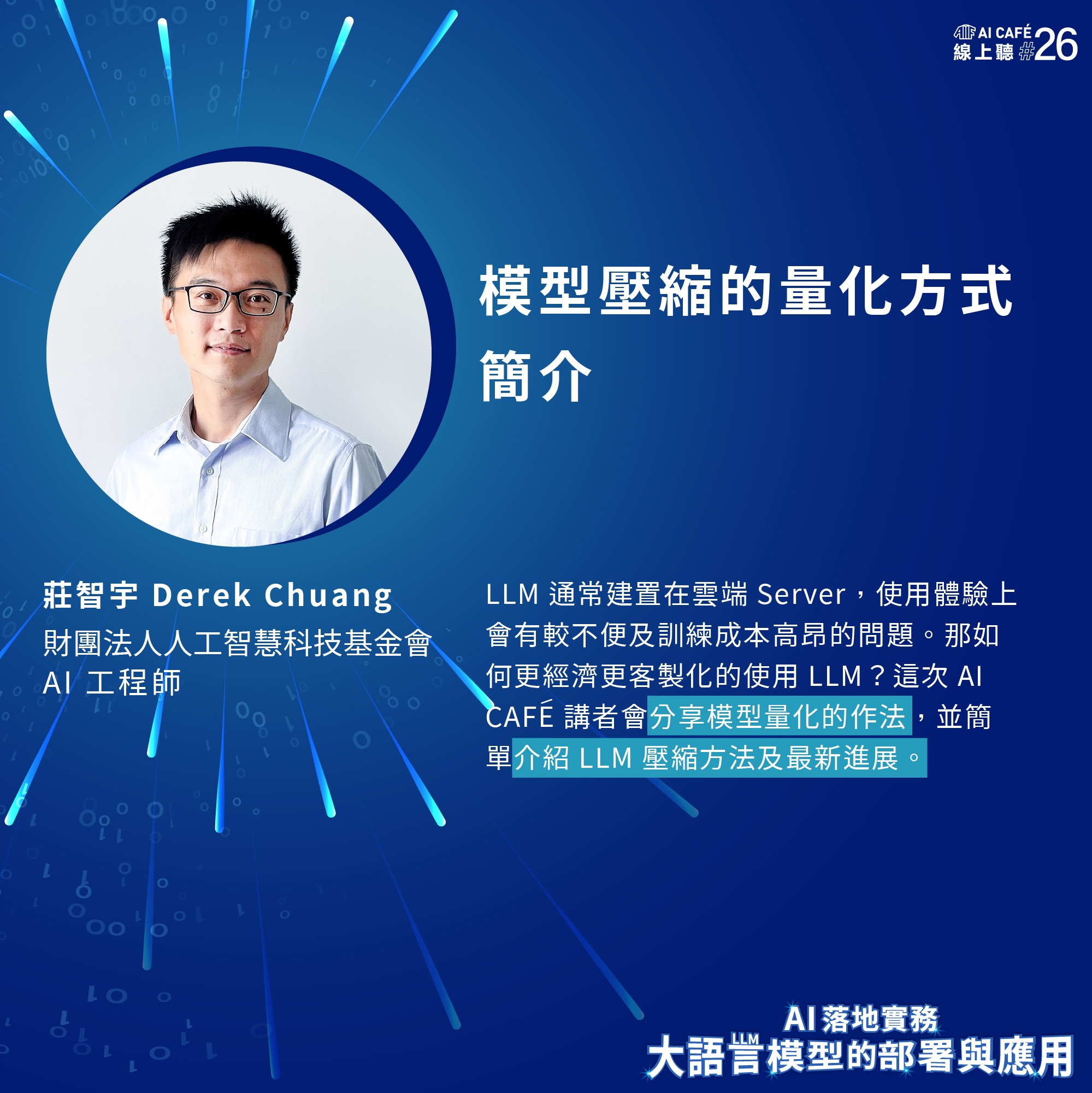 12:35 ~ 13:05 | 【模型壓縮的量化方式簡介】 人工智慧科技基金會 AI 工程師|莊智宇 |