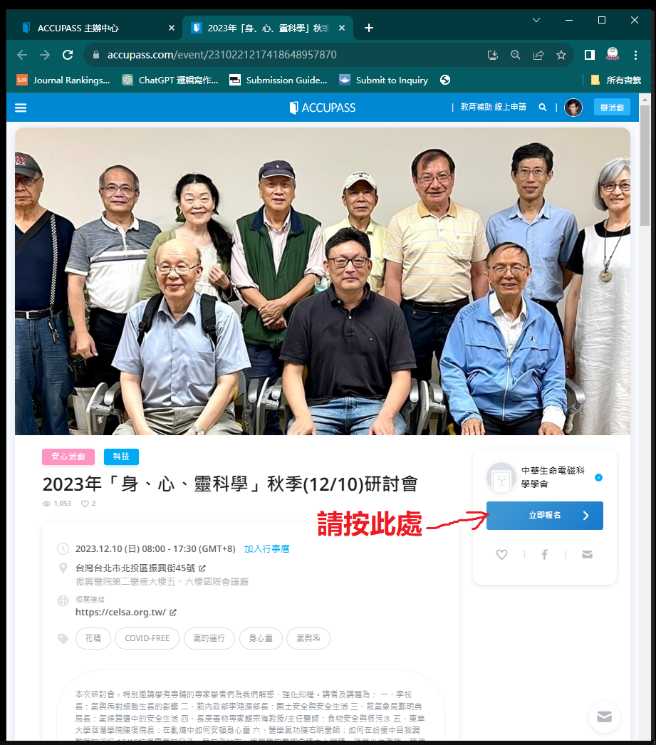 2023年「身、心、靈科學」秋季(12/10)研討會