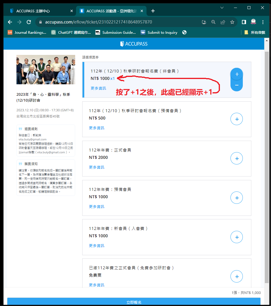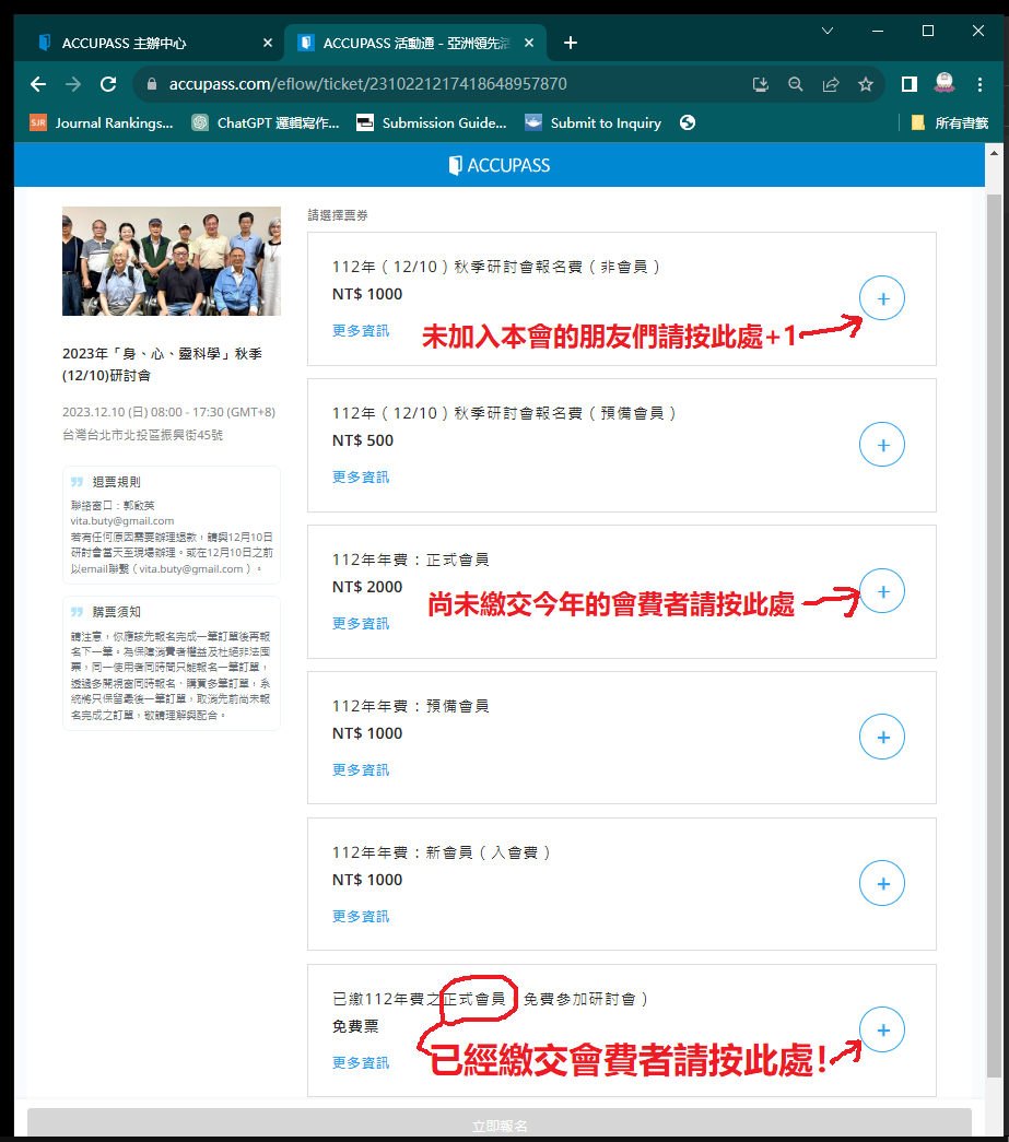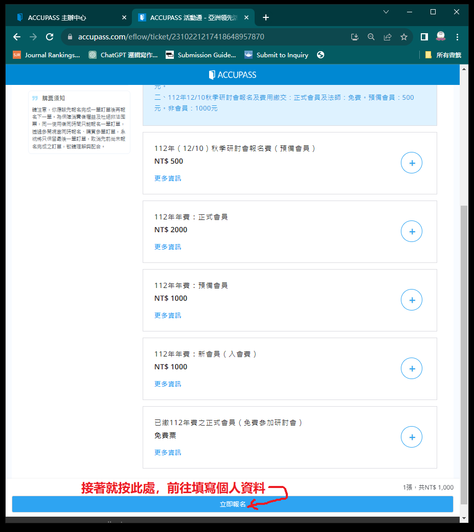 4.法師及已繳過112年年費的正式會員請點選最下面的免費票