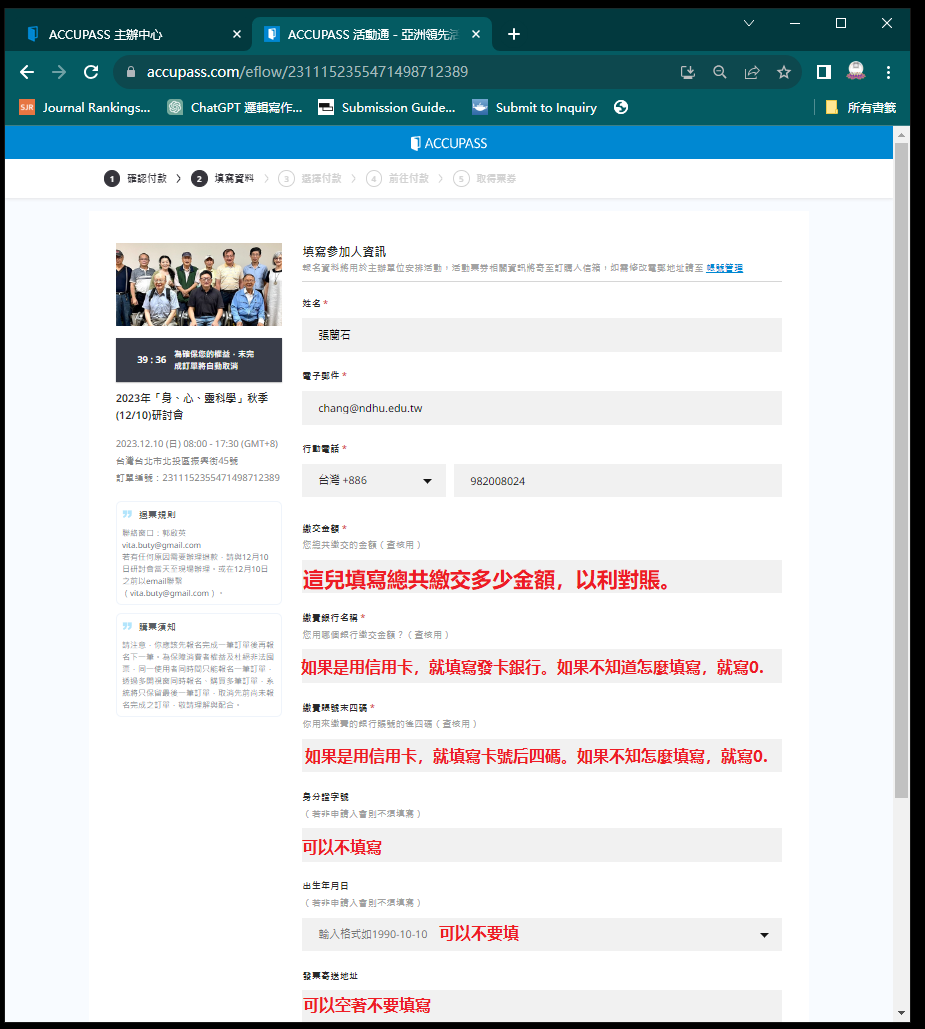 【報名(填寫表單)及繳費的流程:給不熟悉報名/繳費平台的朋友】