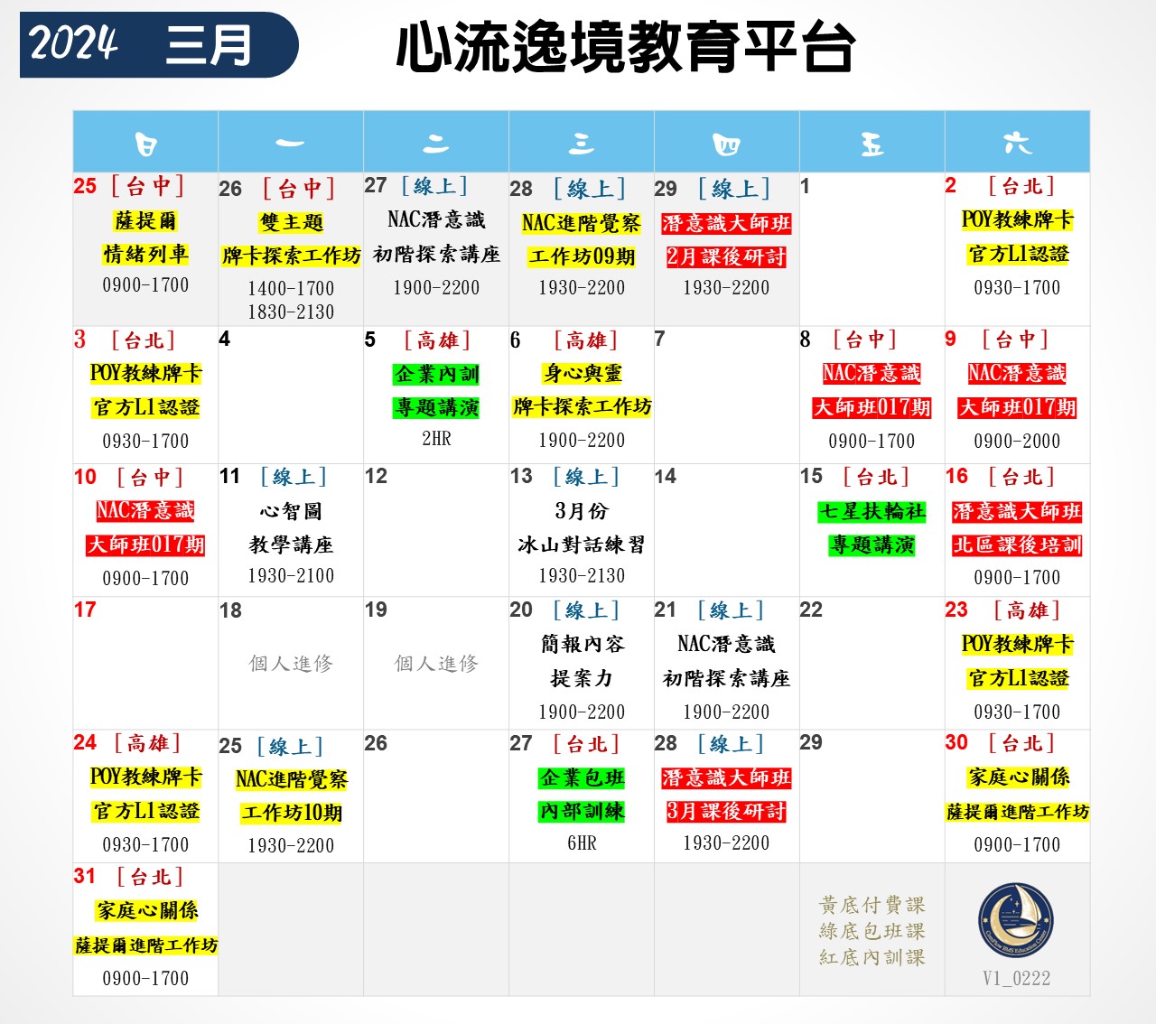 ❤心流逸境教育平台-三月份課程表❤