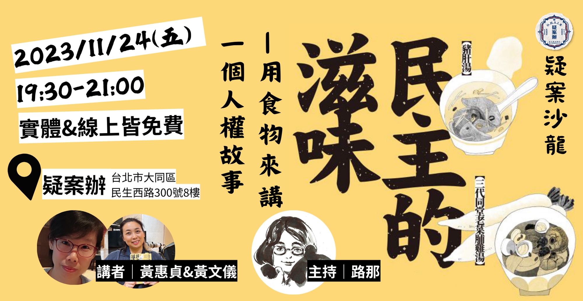 主題│【疑案沙龍】民主的滋味—用食物來講一個人權故事