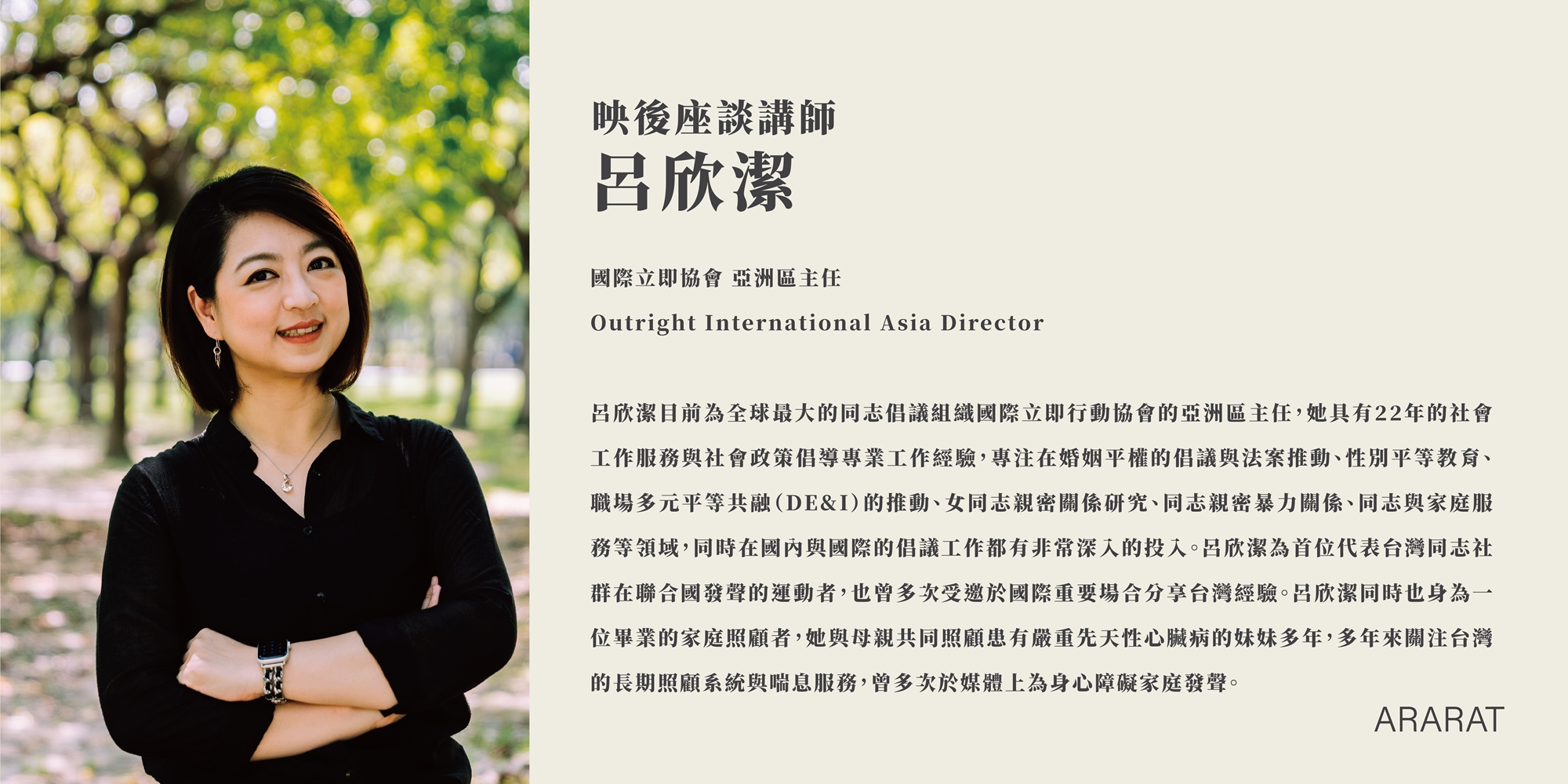 ◟映後座談:呂欣潔(國際立即協會 亞洲區主任 Outright International Asia Director)