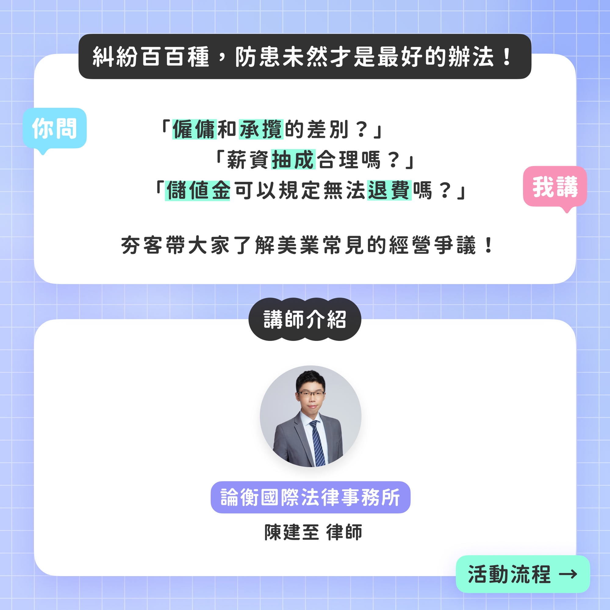 邀請專業律師〖論衡國際法律事務所〗,帶大家了解美業常見的經營爭議。