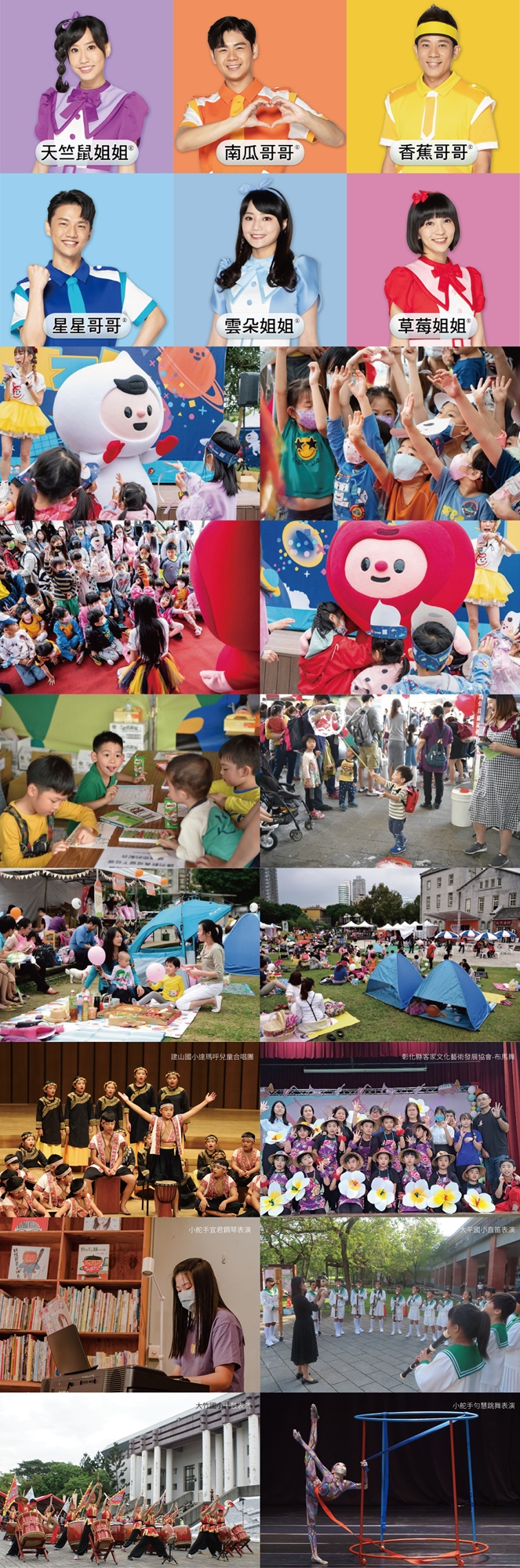 大朋友小朋友最愛的泡福&心仔、合唱團、十鼓和布馬舞......等精彩演出!還有YOYO家族的天竺鼠姐姐、南瓜哥哥、香蕉哥哥、星星哥哥、雲朵姐姐、草莓姐姐,一起扭扭屁股、跳跳舞~