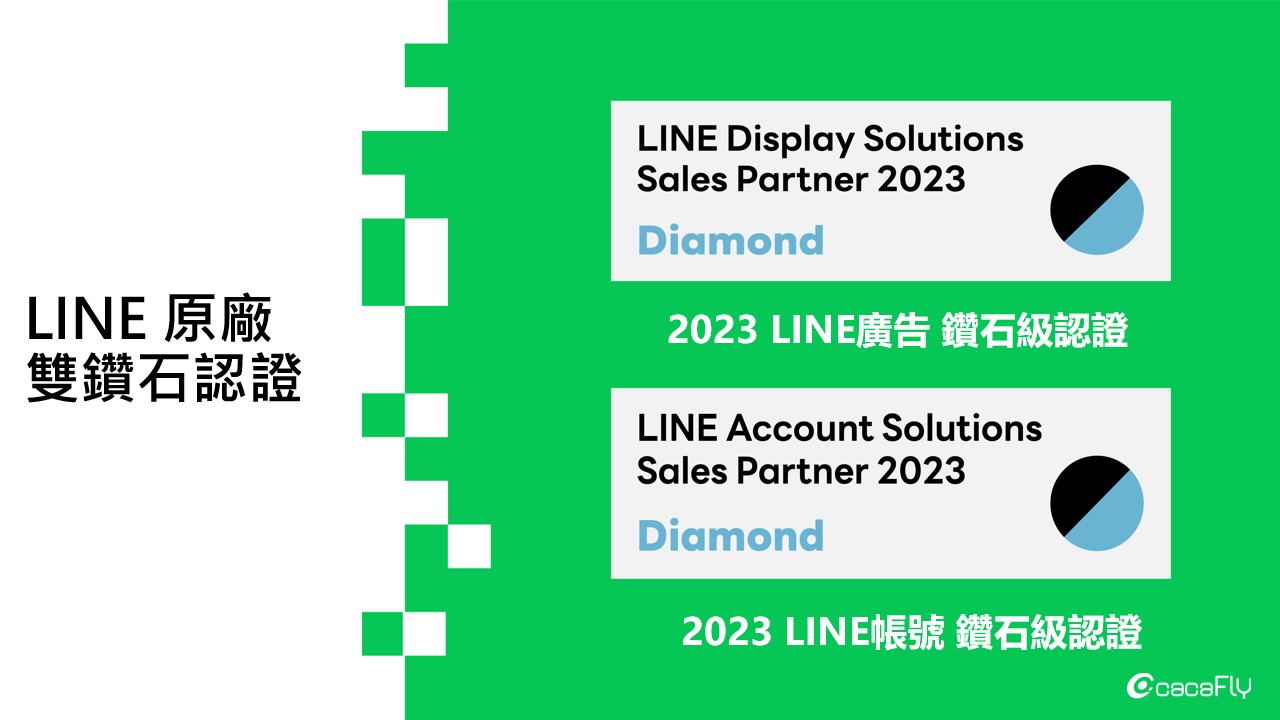 cacaFly 聖洋科技在多元化媒體的經營下,連續兩年成為 LINE Family Club,並榮獲「LINE Biz-Solutions Partner」- LINE Display Solutions Sales Partner 及 LINE Account Solutions Sales Partner,雙鑽石級合作夥伴認證!