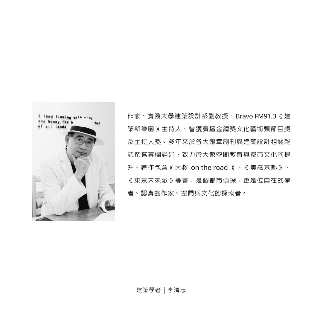 作家、實踐大學建築設計系副教授、Bravo FM91.3《建築新樂園》主持人,曾獲廣播金鐘獎文化藝術類節目獎及主持人獎。多年來於各大報章副刊與建築設計相關雜誌撰寫專欄論述,致力於大眾空間教育與都市文化的提升。著作包含《大叔 on the road》、《美感京都》、《東京未來派》等書,是個都市偵探,更是位自在的學者、認真的作家、空間與文化的探索者。