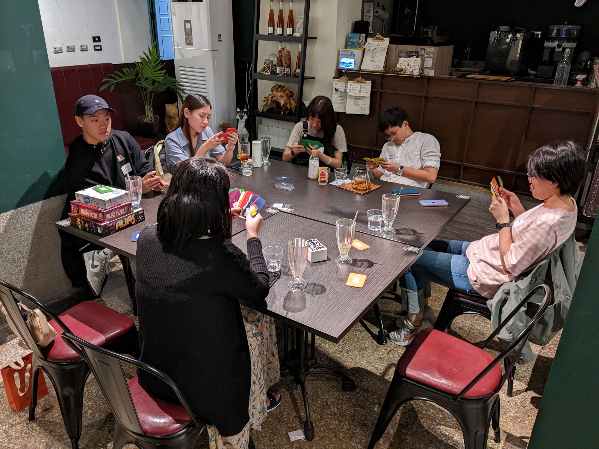 - 接著人差不多到齊之後,我們會玩當天的主遊戲(機密代號、估估劃劃等)。