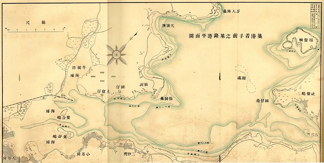 1899年第一期基隆港築港之前之平面圖。圖片來源:基隆築港誌圖譜。臨時台灣總督府工事部編纂,1916年。(圖/國家圖書館館藏)