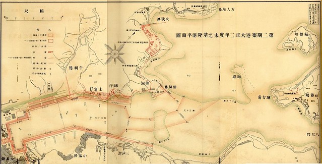 1906年第二期基隆港築港工程之平面圖。圖片來源:基隆築港誌圖譜。臨時台灣總督府工事部編纂,1916年。(圖/國家圖書館館藏)