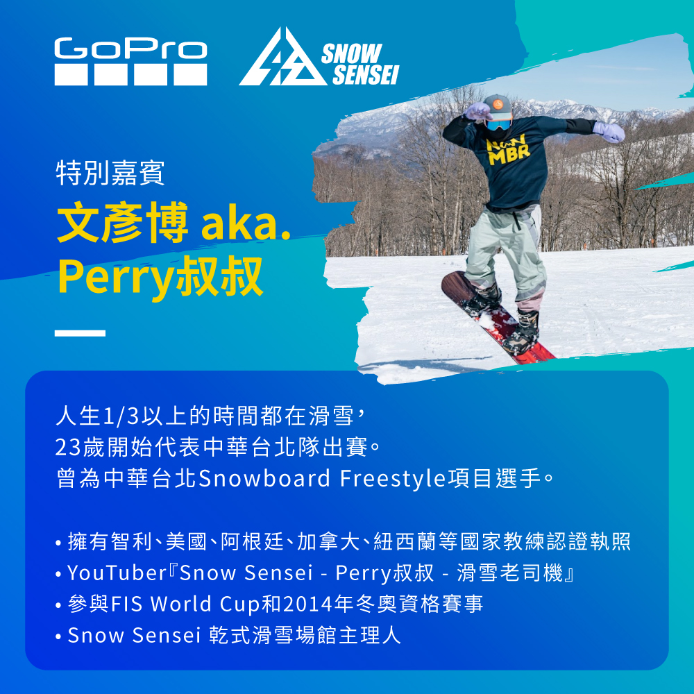 - 本活動主題為「GoPro滑雪攝影」,過程將有專業教練及選手示範滑雪動作。
