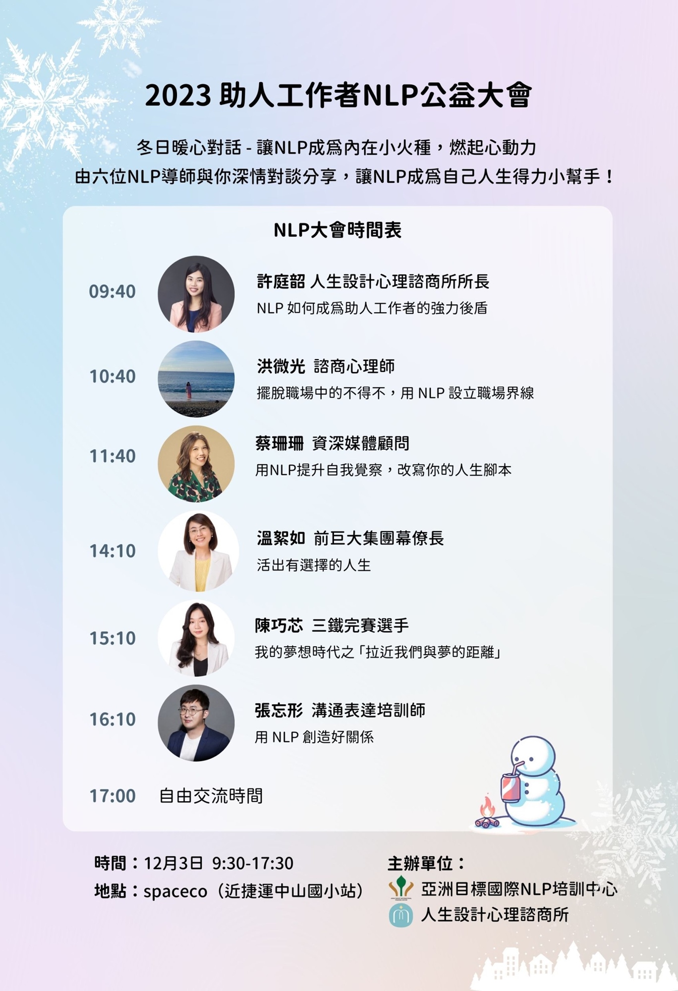 ☆ 冬日暖心對話-助人NLP公益大會費用 ☆