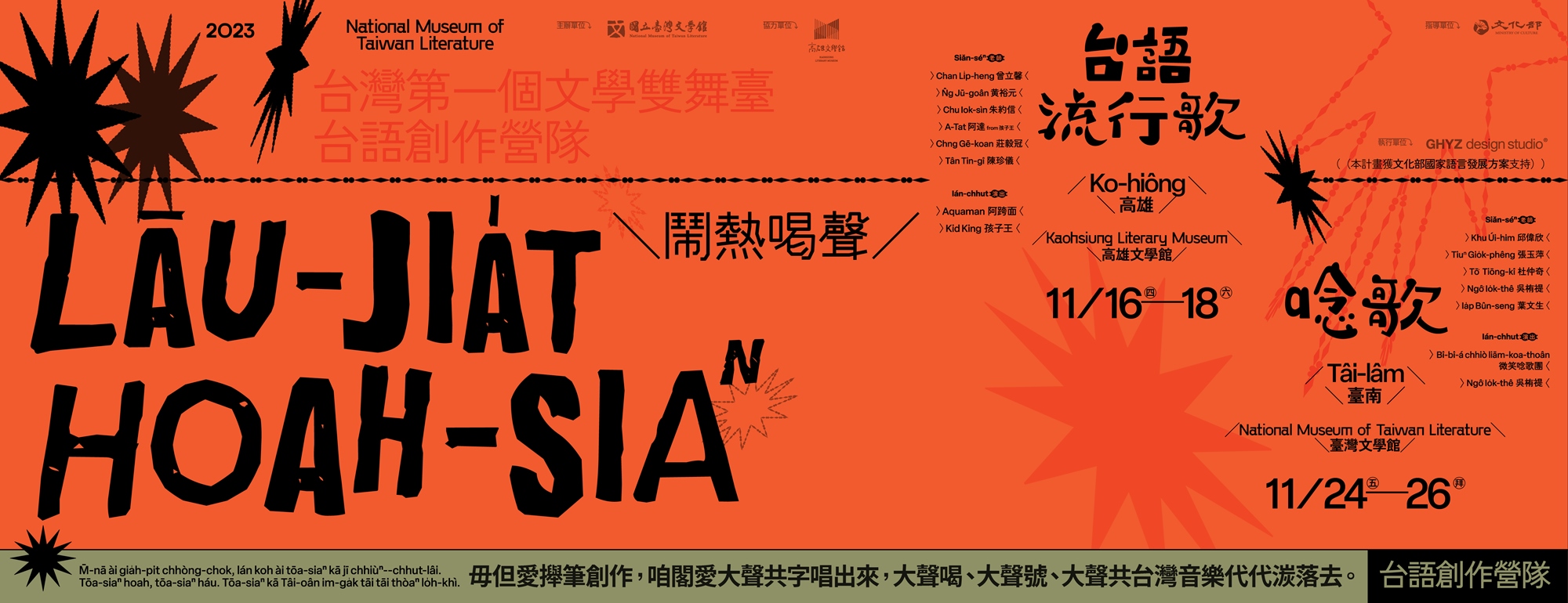 這个暗會是佇✹Lāu-jia̍t hoah-siaⁿ 鬧熱喝聲✹創作營隊內底,頭一工暗時的活動,邀請著「阿跨面」&「孩子王」來表演,若已經是營隊的學生就免拆票,這主要是開放予無報名的民眾拆票。