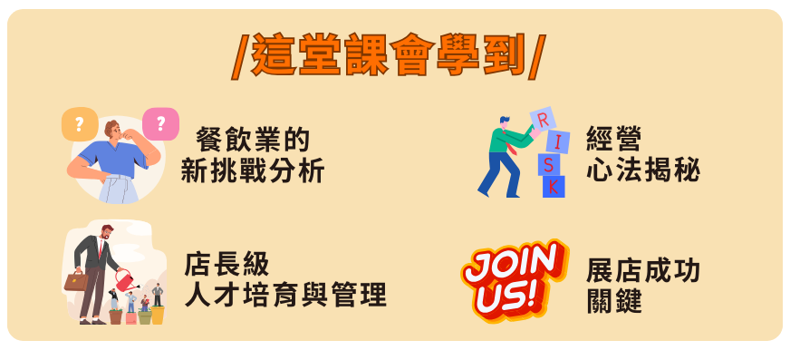 - 目前已經經營餐飲連鎖業的老闆或HR、高階管理人員。
