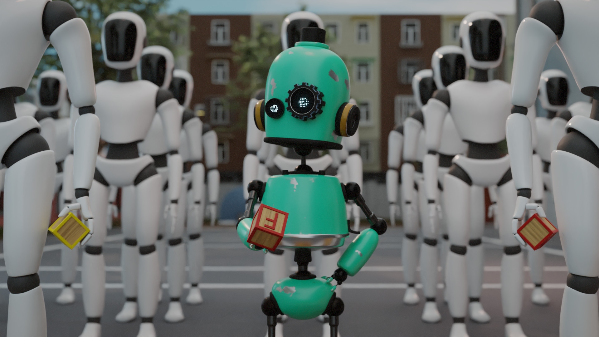 一個機器學生開始他在機器學校的生活,學習成為一個機器助手。一開始,因為他看起來與同學不同而感到自卑,並在課堂上表現不佳。他試圖融入,努力學習變得更好,但最終他意識到,他的才華不在於那些重複的動作,而在於對知識和情感的理解。