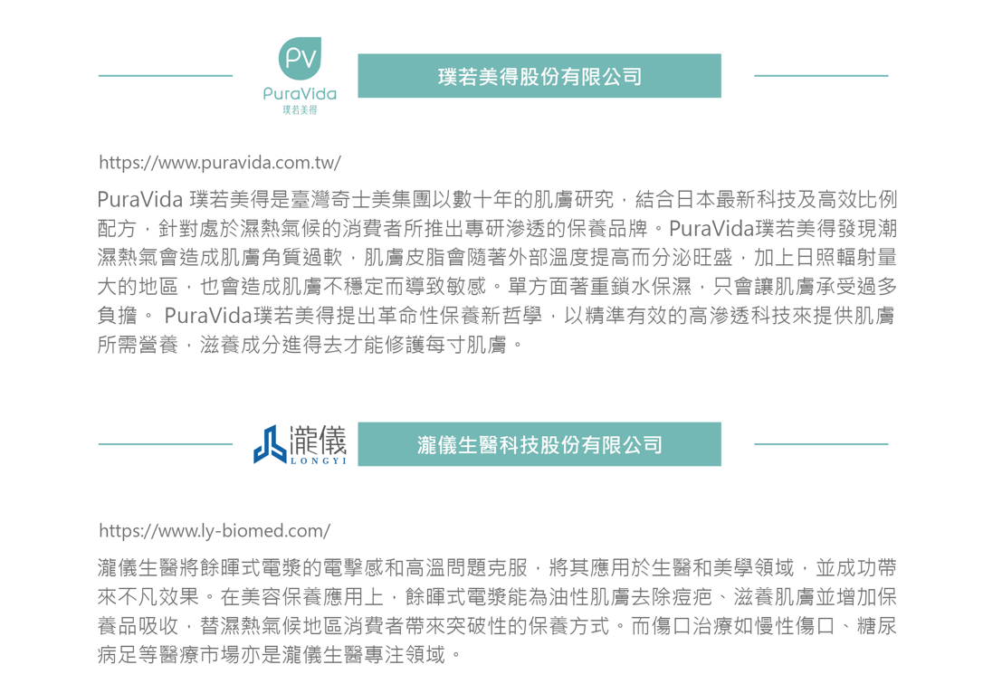 保養品類(原料及品牌)、美容儀器類(品牌)、文創類(品牌)。