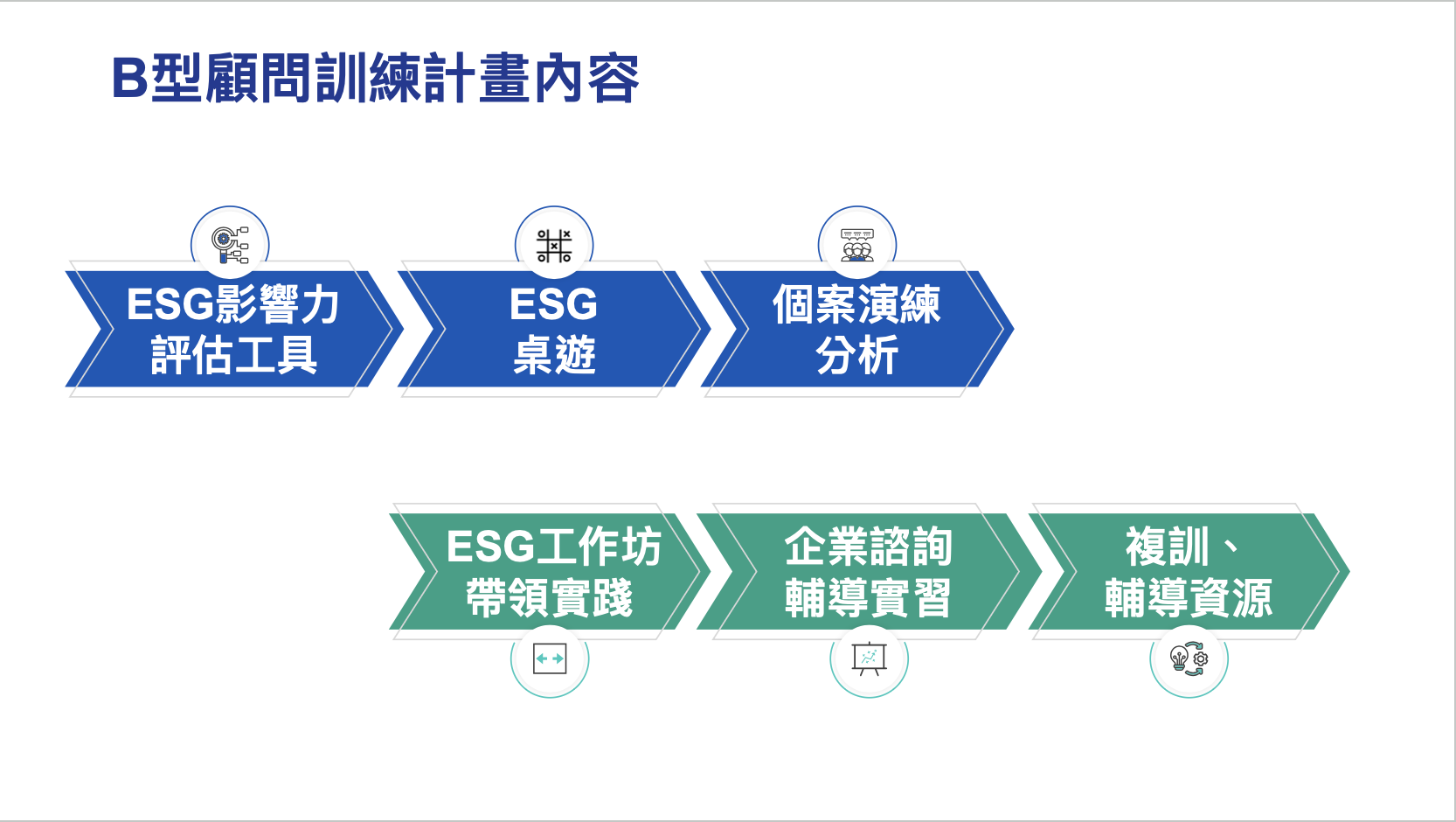 - 強化輔導企業ESG轉型之專業能力