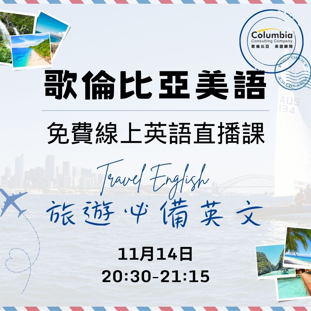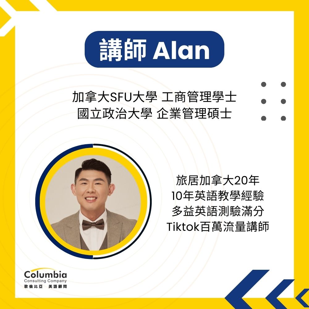 歌倫比亞美語的專業講師Alan,擁有在國外旅居多年的經驗。將在線上直播免費課程,教你實用的旅遊英文,包含飯店、機場、餐廳必學單字及例句。跟著Alan老師輕鬆學,國外旅遊更快樂!