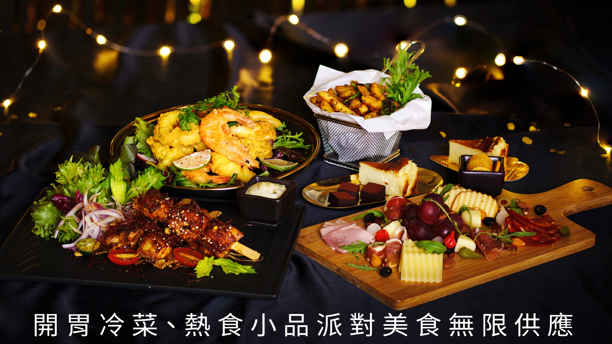 - 小食供應-綜合起司盤、開胃冷菜、熱食小品、佐酒甜點無限供應