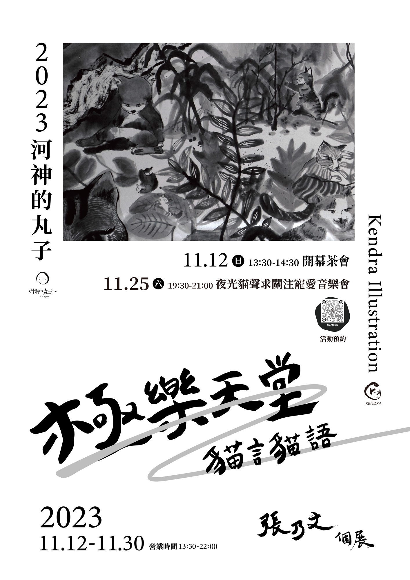 現場將會有創作導覽說明、音樂表演以及手印夜光貓咪畫(另送展覽小禮物),期待大家在假日中,放慢腳步,享受一場special且chill~的貓語體驗,並且一同歡唱!