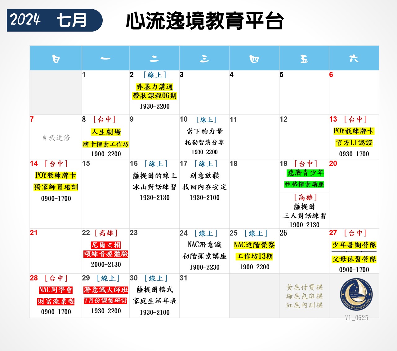 ※週六為官方認證課程,週日為額外牌卡師資專訓
