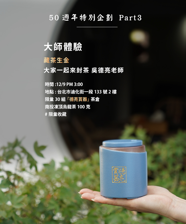 - 親手封茶,留住記憶。(自帶茶葉及茶倉)