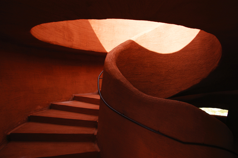 以拉坯代表製陶工序的起點,邀請觀眾走進兼具觀景台功能的內部空間。由坯頂灑下光明的神聖場域,彷彿生命自大地之母孕育旋轉而出,而登頂時則能再次感受新生的喜悅。