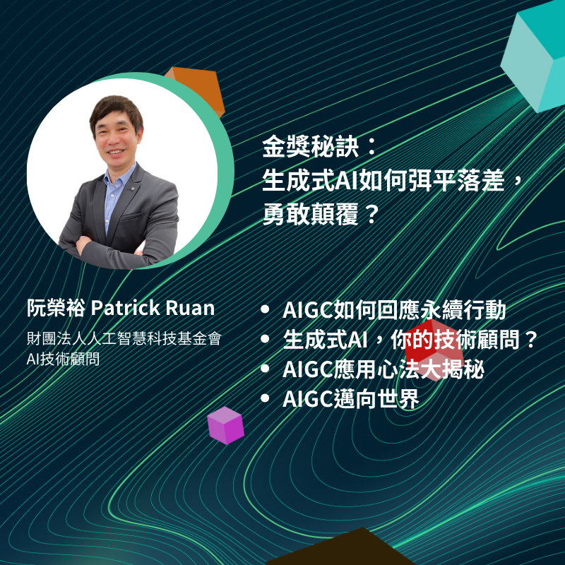 19:15 ~ 20:15 | 金獎秘訣:生成式AI如何弭平落差,勇敢顛覆? |