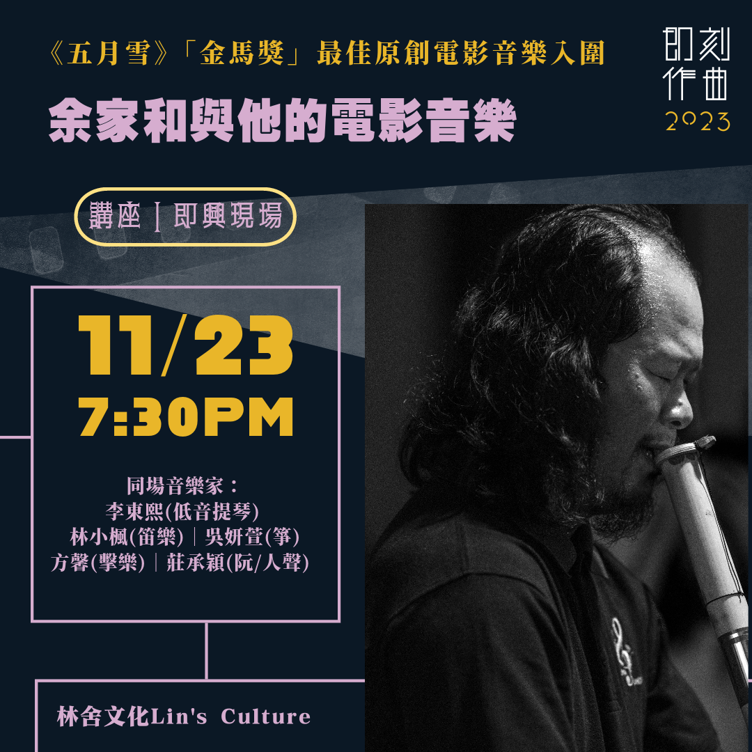 本場活動特別邀請到,才以《五月雪》電影入圍「金馬獎」最佳原創電影音樂的大馬當代作曲家余家和,來分享他多年的作曲及電影配樂經驗。同時,他也是在馬來西亞非常活躍的即興演奏家,以作曲家身分同時又熱衷於第一線的自由即興演出,這非常少見,近年來,他又將創作視角延伸到了環境錄音/採集領域,時常穿梭於城市與山野之間。