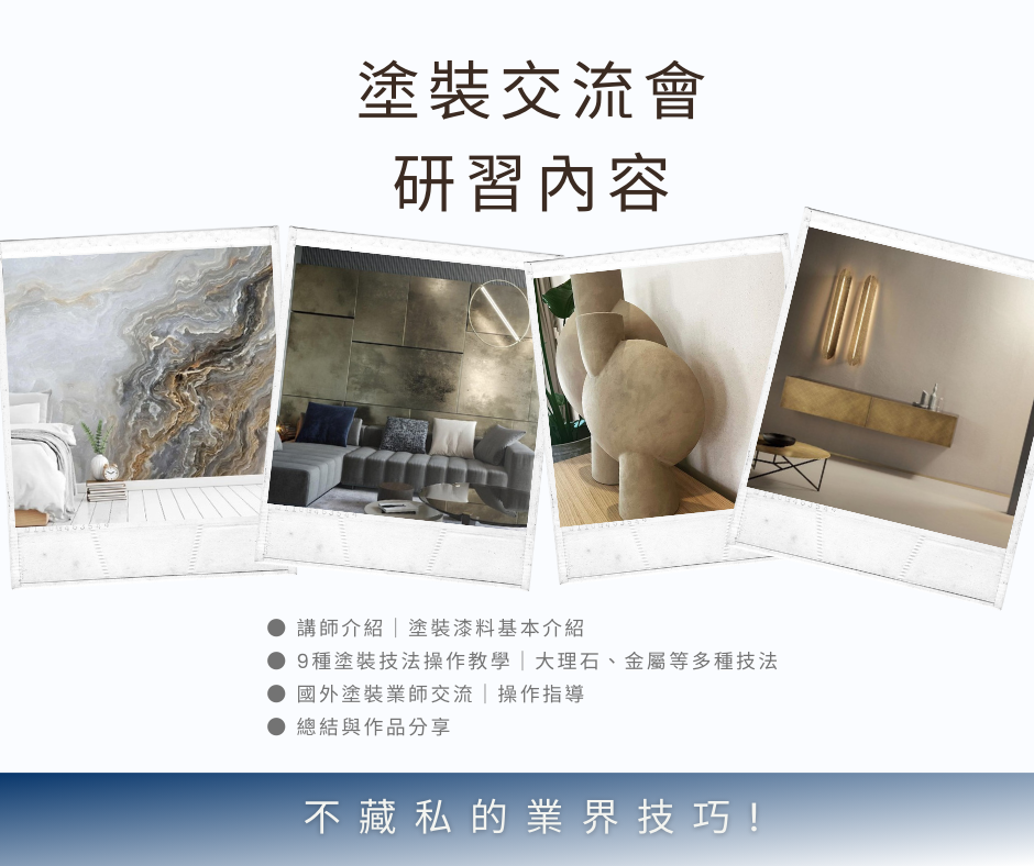 本次交流會雖以義大利塗料為主,但分享的技法會混和多品牌的系統,因此只要技法運用得當,便可以使用他類品牌做出相同效果。