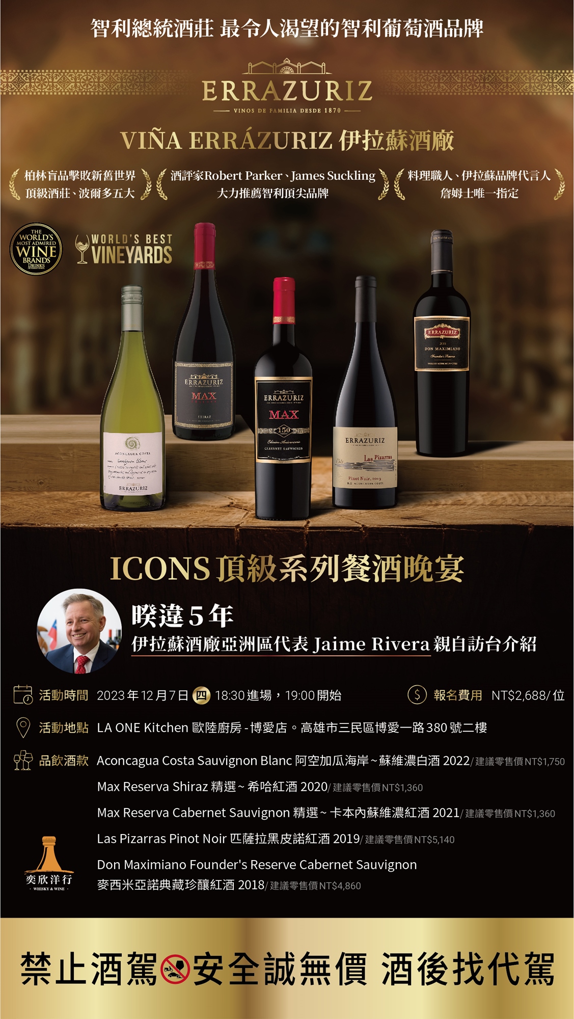 《VIÑA ERRÁZURIZ 智利伊拉蘇酒廠x奕欣洋行 頂級餐酒晚宴》