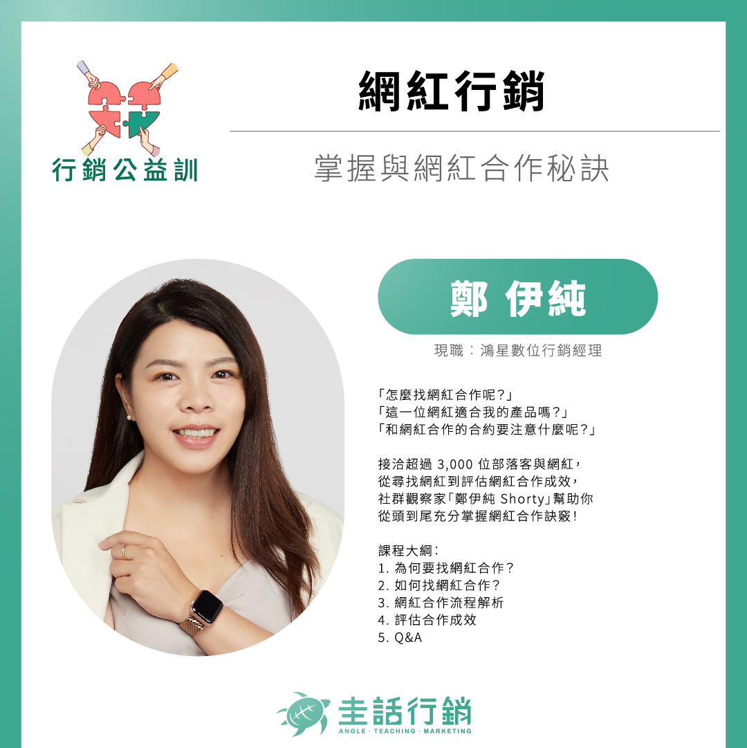 接洽超過 3,000 位部落客與網紅,從尋找網紅到評估網紅合作成效,社群觀察家「鄭伊純 Shorty」幫助你從頭到尾充分掌握網紅合作訣竅!