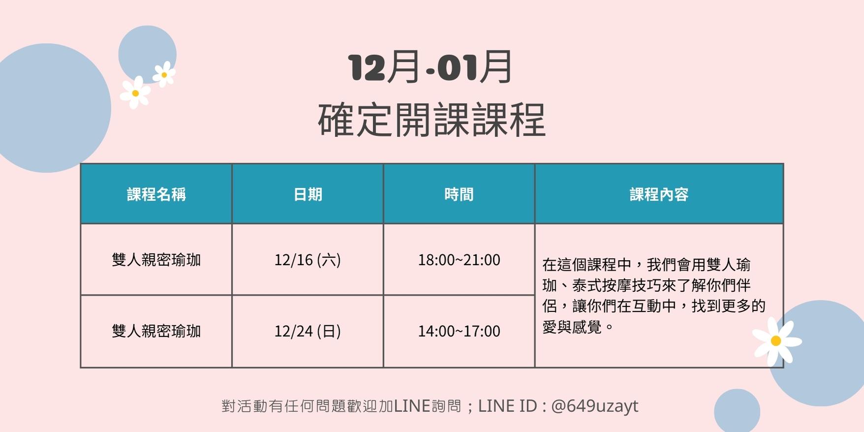 2. 本課程為3小時課程,藉由肢體互動解剖心靈能量關係,幫助親密關係更為緊密、靠近。