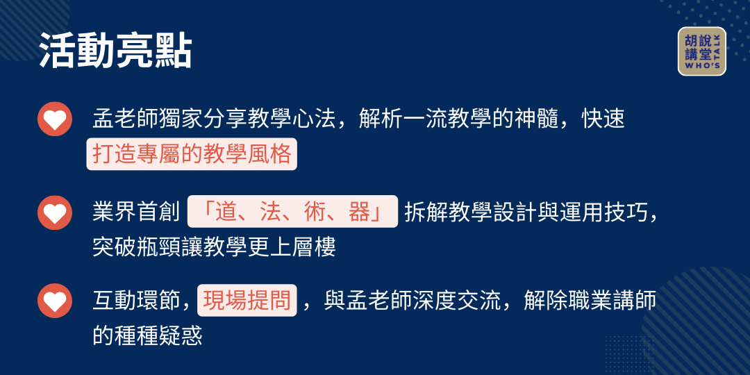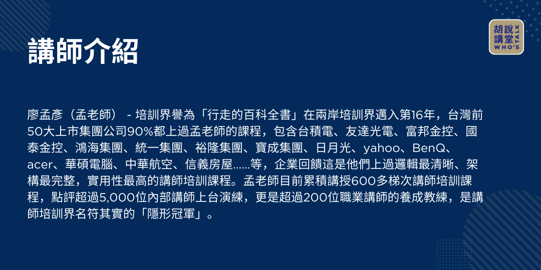 ViewSonic 十二月的胡說講堂 Who's Talk,特別邀請培訓界譽為「行走的百科全書」金牌講師教練 - 孟老師。結合孟老師卓越的講師力與 ViewSonic 最先進的教育科技解決方案,打造互動豐富的數位學習體驗,為教育帶來嶄新的可能性。現場還有ViewSonic教育產品驚喜價喔!