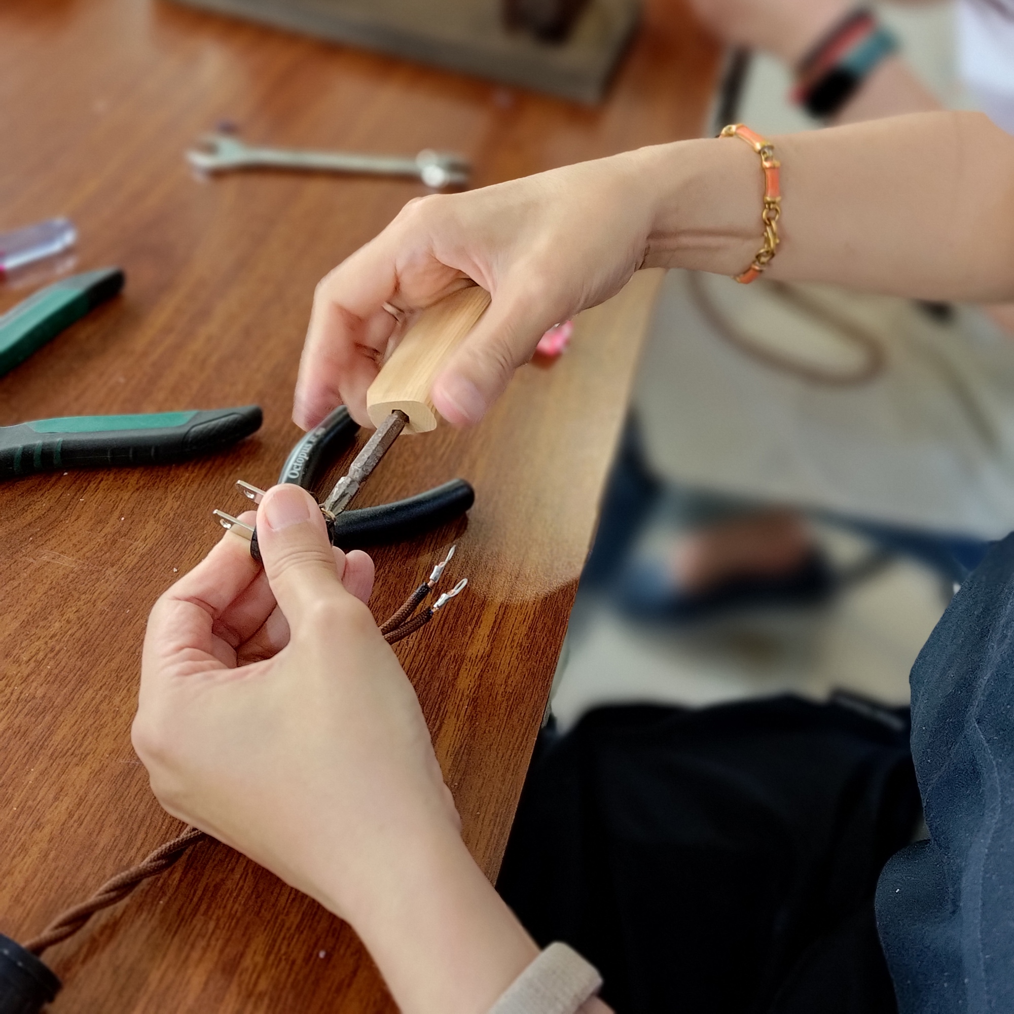 您可以帶自己喜愛的酒瓶來(若無法切割,就用工坊準備的酒瓶),親手為燈座,染上溫潤的顏色。我們會教你如何使用剝線鉗來安裝電燈的開關,並把作品組裝起來。