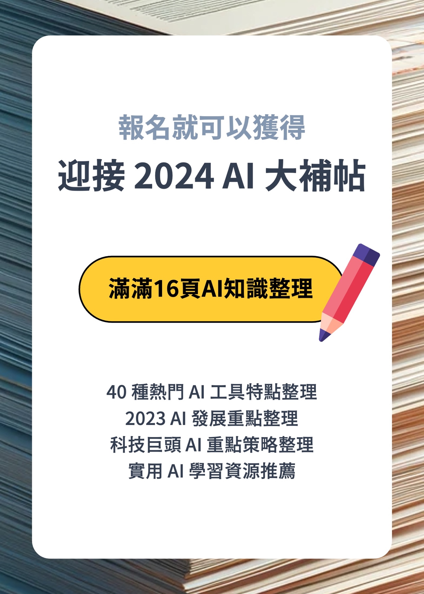 報名即可免費獲得「迎接2024 AI大補帖」!