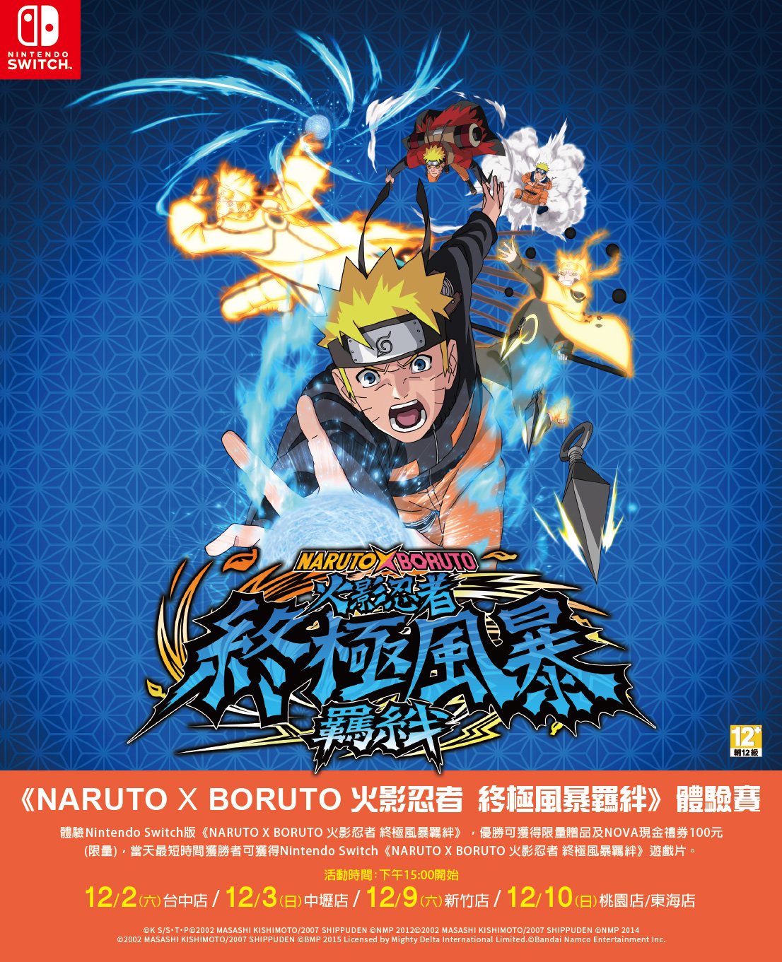 12/09(六)NOVA新竹店、12/10(日)NOVA桃園店/東海店 下午15:00開始