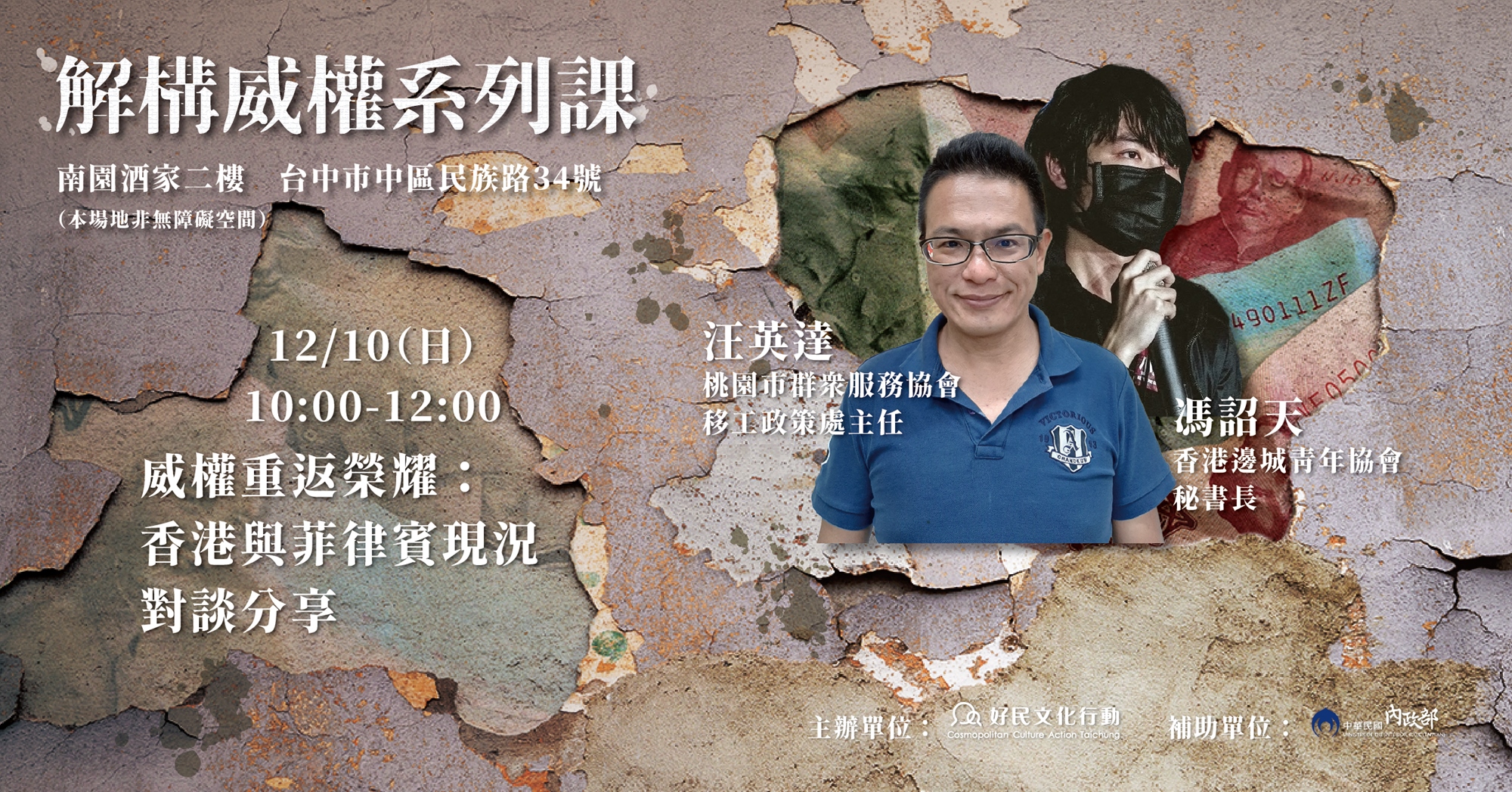 與談:馮詔天/香港邊城青年秘書長、汪英達/桃園市群眾服務協會移工政策處主任