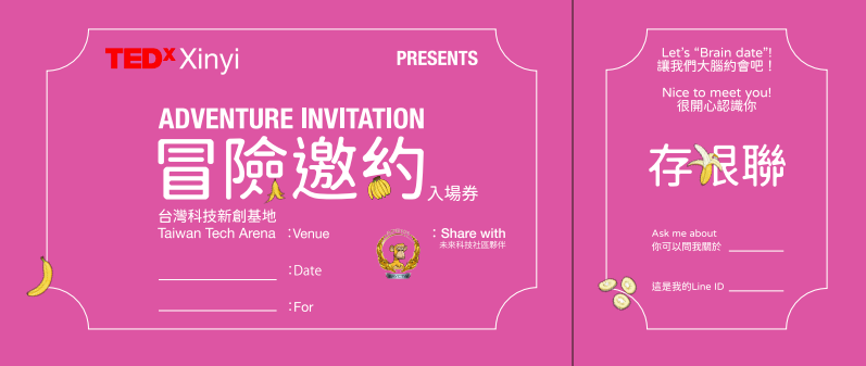 - TEDxXinyi策展團隊負責窗口:dawn.chang@tedxxinyi.com