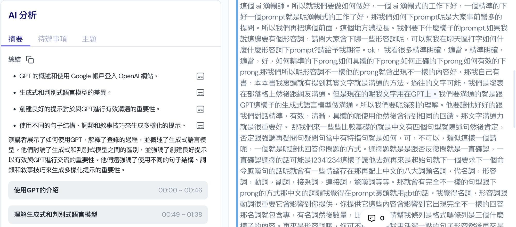 運用AI分析語音重點摘要、紀錄逐字稿,並結合ChatGPT彙整與修正!