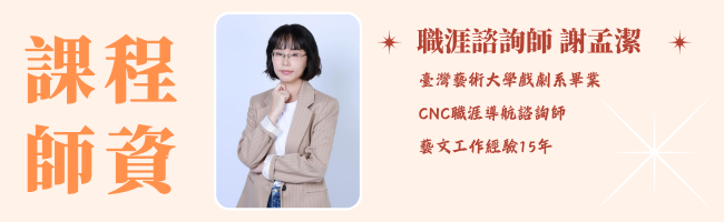 CNC 職涯導航諮詢師-孟潔,引導你建立職涯規劃的大方向,探索你的興趣與價值觀;