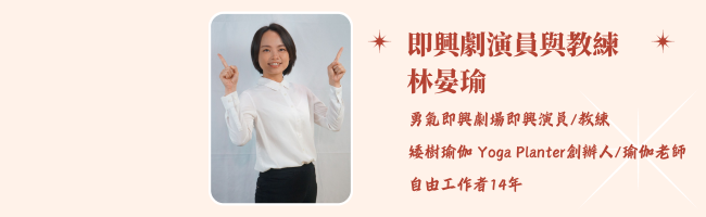 即興劇教練-晏瑜,帶領大家一起進行好玩的即興劇遊戲,認識求職所需的軟技能,與在變動中處之安然的求職心法。