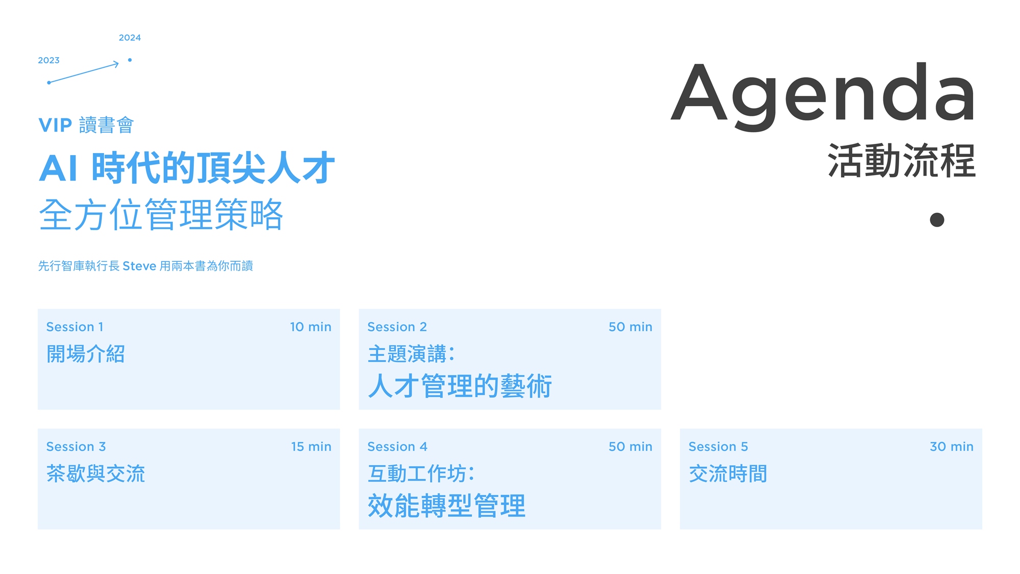 結合經典理論與當代實踐:通過對《人才:識才、選才、求才、留才的10堂課》和《葛洛夫給經理人的第一課》兩本經典書籍的深入解讀,本次活動旨在將管理經典理論與現代的人力資源管理做結合,,為參加者提供一個全面且實用的學習經驗,加深對企業培訓和人資策略的理解