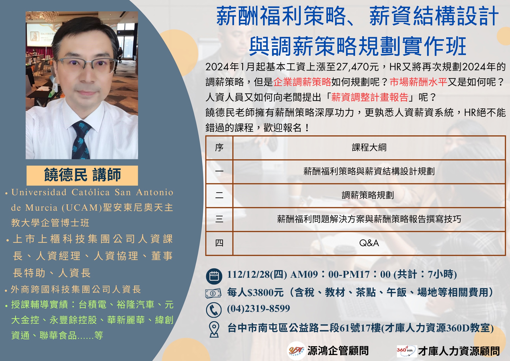 【上課地點】:台中市南屯區公益路二段61號17樓 ---才庫人力資源教室(華爾街大樓)