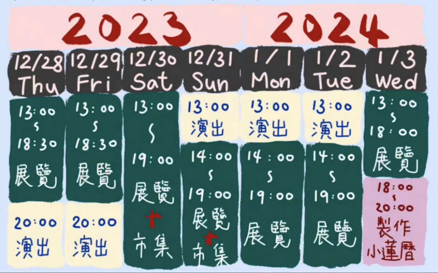 1 月 3 日(三)晚上 18:00-20:00 — 特別活動:製作小蓮曆(本場次免費入場)