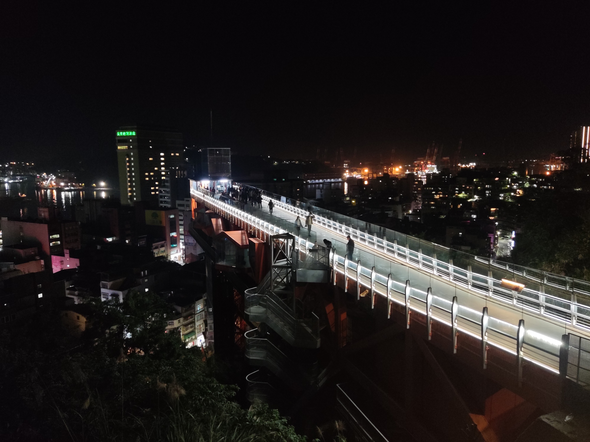 頂部平台的「天空步道」橫跨87公尺,與主普壇連接,上層有露天觀景平台,而室內則設有獨特觀景咖啡座,每個窗口都別有洞天,一個可見基隆港,另一個可俯瞰基隆海洋廣場。