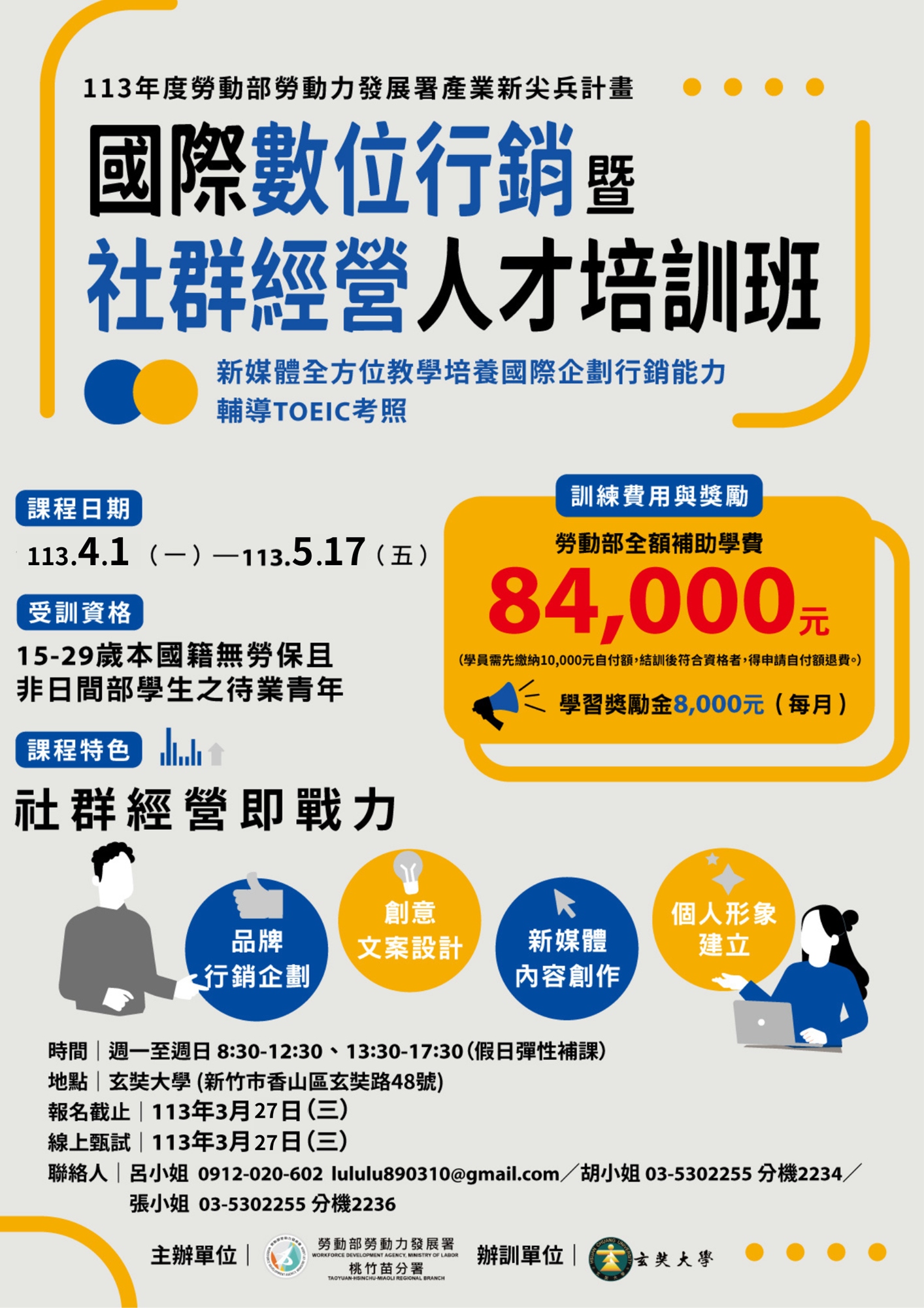 貼心提醒:若您目前有在職身份,因計畫補助名額僅限30位,建議可以先報名預留名額;惟須在報名截止日(3/27)前,確定離職、退保,即符合參訓資格!