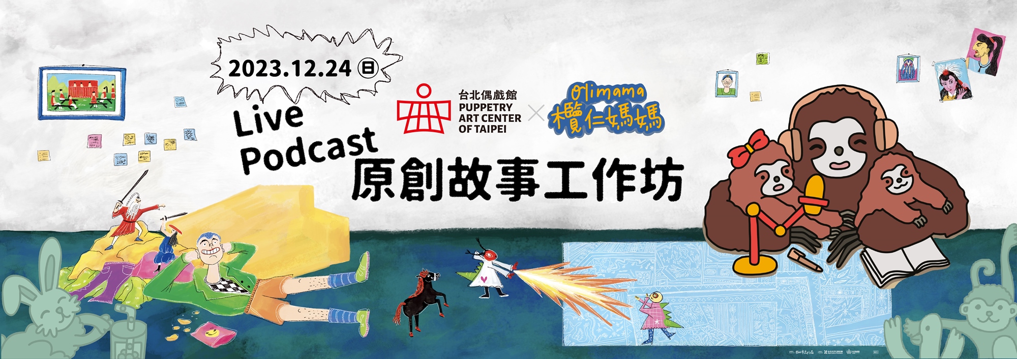 台北偶戲館「Got RIFF當代布袋戲特展」,延續對於偶的多元面貌探討,聚焦當代在地故事爬梳實踐中,思索動態狀態下布袋戲的「創新」意義。特展呼應傳統布袋戲「聽戲」的欣賞特質,延伸工作坊邀請Podcast節目《欖仁媽媽說故事》主持人暨兒童文學工作者欖仁媽媽Samantha,推出「平安夜特企 X Live Podcast原創故事工作坊」,以全新原創故事引導親子想法交流、透過光影呈現接下來的共創故事發展!